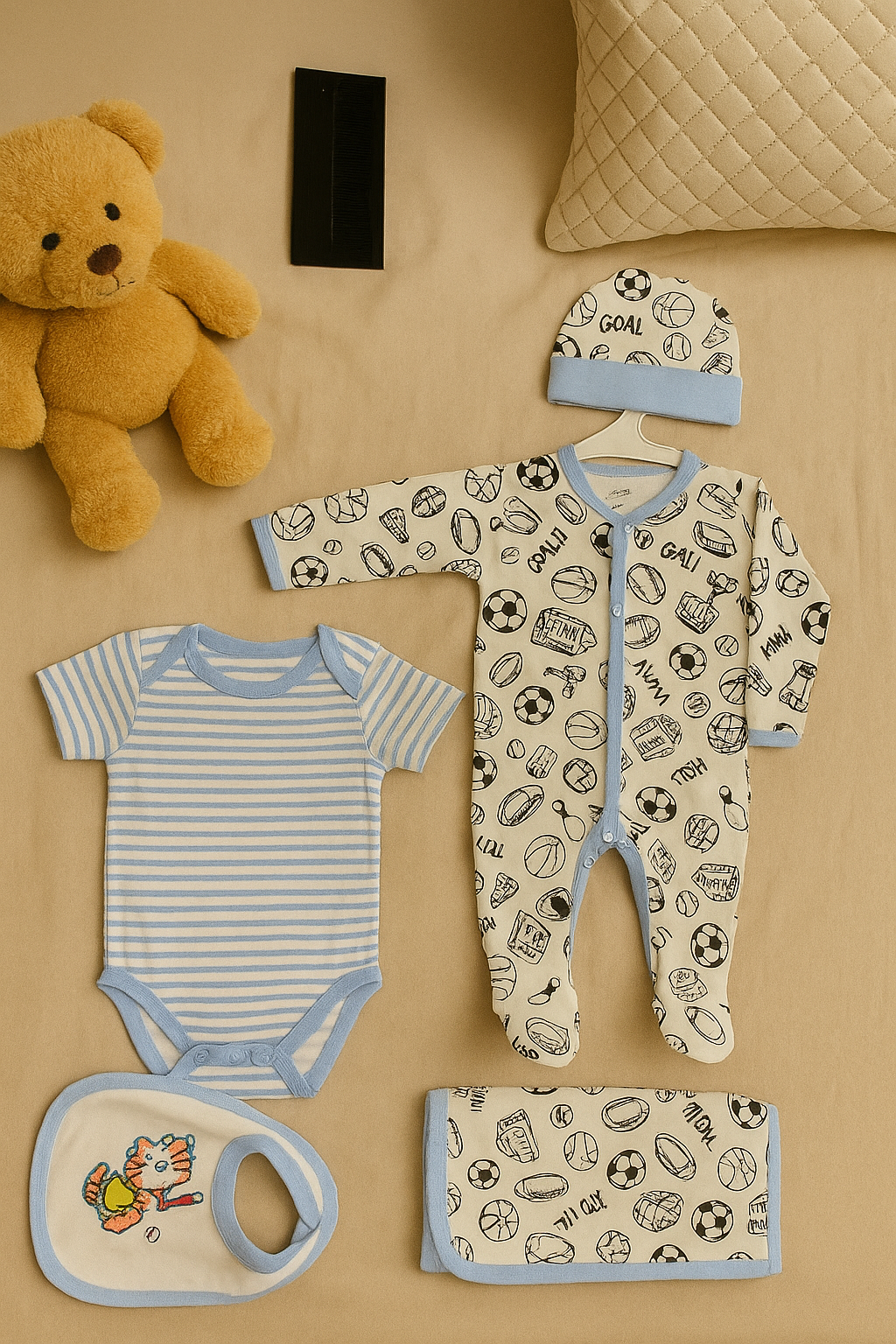 1️⃣ Full Romper 2️⃣ Bib 3️⃣ Cap 4️⃣ Wrapping Sheet 5️⃣ Body Suit