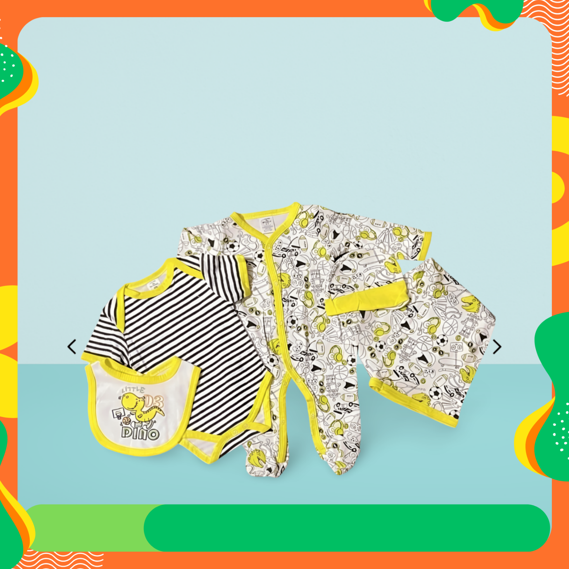 • Vibrant Dino Theme: Adorable "Little Dino" design in cheerful yellow and white, perfect for little explorers.