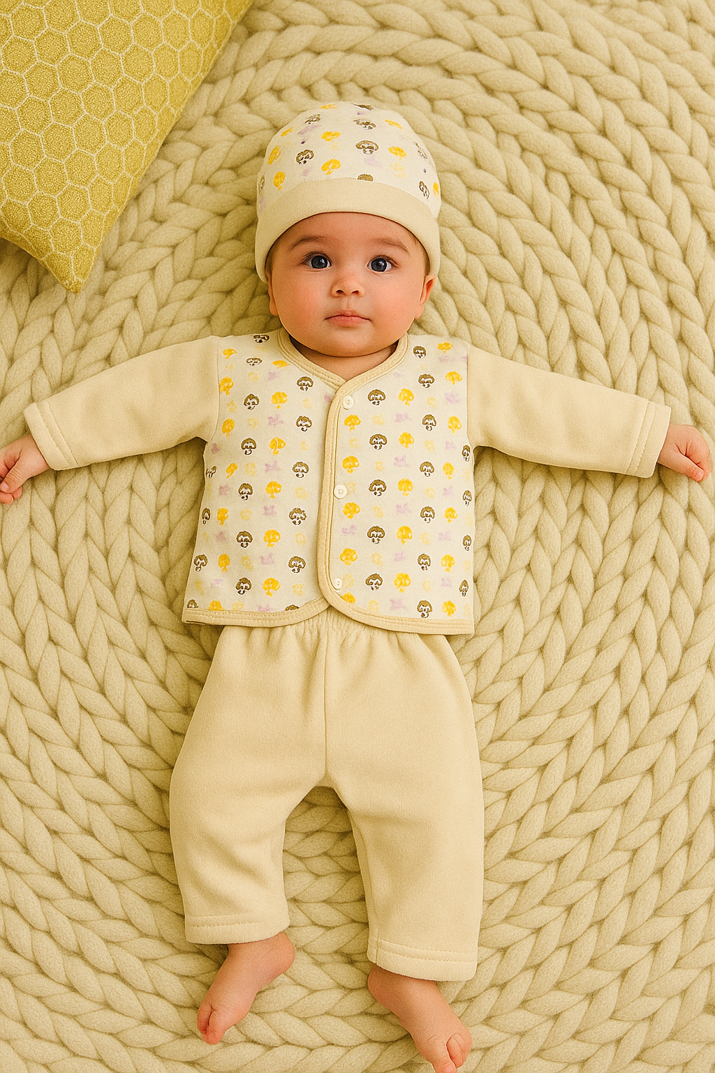 Stock up on essentials with this adorable 3-pack of complete baby outfits. Each 4-piece set is made from soft, comfortable fabric perfect for your little one.